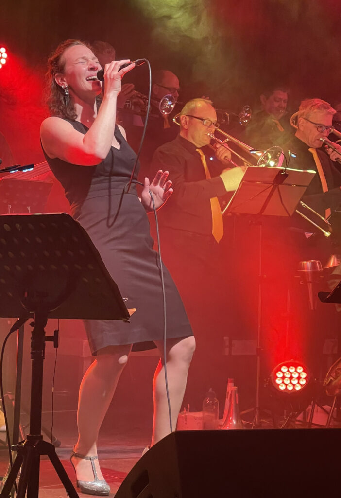 Doch das Konzert bietet noch mehr: Die Sängerin Isabel Haist sorgt für vokale Glanzpunkte und bringt Klassiker aus Jazz und Soul auf die Bühne. Mit „Too Darn Hot“ (Ella Fitzgerald), „Natural Woman“ im Stil von Aretha Franklin und „Go to Hell“ (Gitte Haenning) verbindet sie Swing, Soul und Power – ein spannender Kontrast zum instrumentalen Jazzrock-Programm.